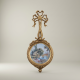 There is a particular discipline to the Louis XVI decorative vocabulary — where the Rococo's joyful asymmetry was finally stilled, and replaced with calm, measured elegance. This handcrafted decorative wall plate faithfully reproduces that spirit: an oval form of quiet authority, crowned by a sculpted ribbon-and-bow crest that ties the whole composition together with a characteristic Neoclassical flourish. At its center, a circular ceramic medallion depicts a hand-painted pastoral scene in the manner of François Boucher — figures at leisure by a rustic mill beside a stone bridge, set among trees rendered in soft blues and warm earth tones. The painting is not merely decorative; it is a reference to the taste of an era that regarded landscape art as the ultimate expression of civilized leisure.