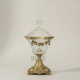 Weight: 4 kg. The substantial weight speaks to the quality of the crystal and the solid brass construction. This is not a lightweight decorative object — it has the presence and heft of a piece made to last. The lidded form makes it equally suitable as a display piece or a functional candy dish, fruit bowl, or decorative vessel on a formal dining table or console.