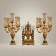 Neoclassical Gilt Brass & Green Marble Garniture Set - Lyre Clock with Five-Arm Candelabra