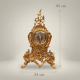 The mantel clock measures 40 cm in height × 24 cm in width, making it the ideal focal centerpiece for a standard fireplace mantel, entryway console, or formal sideboard. The candelabras are scaled to complement, rising to a harmonious height that frames the clock without overpowering it. The complete set weighs approximately 4 kg, offering the reassuring solidity of genuine brass. Assembly is minimal — candelabra arms slot into position without tools.