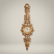 Hang this clock on a bare wall and the wall disappears — what remains is a vertical column of gilded foliage, scrolling acanthus, and a cream Roman-numeral dial set at the center like a medallion in a crown. Faithfully reproduced in the tradition of the French cartel clock — the wall-mounted timepiece that transformed the act of telling time into an act of decoration — this piece draws directly from the Louis XV Rococo vocabulary: asymmetrical energy contained within a deliberate vertical axis, every curve placed with intention.