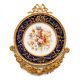 Sèvres-Style Cobalt Porcelain Decorative Wall Plate with Gilt Brass Floral Frame
