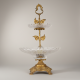 Set a table with this piece and the conversation shifts — not to what is served, but to what serves it. This two-tier crystal and brass étagère bonbonniere stand draws directly from the French Second Empire tradition of the mid-19th century, when the French table became as much a stage for decorative arts as for dining. The vertical axis of the stand — from the acanthus-cast footed base rising through a crystal ball node to a foliate brass collar and a scrolled cartouche handle at the crown — reads as a complete composition, designed to be seen from every angle.