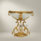 Each piece is meticulously produced by skilled Egyptian artisans at the Brass & Wood workshop. The bowl is crafted from high-clarity glass featuring an intricate all-over etched pattern that catches and refracts light beautifully. The structural frame, rim, and pedestal are cast and hand-finished in premium brass, showcasing relief botanical carvings and three-dimensional figural accents. The result is a harmonious fusion of brass and glass that feels both weightily luxurious and visually airy. Weighing approximately 4 kg, it is substantial and stable while remaining an unmistakable statement piece.