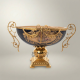 Each piece is individually handcrafted by master artisans, combining premium brass metalwork with hand-painted ceramic. The brass elements are cast and hand-finished to achieve rich, luminous detail in the handles, rim accents, and base. The ceramic bowl is fired to a deep cobalt navy and decorated with finely rendered floral bouquets and swag drapery motifs in gold relief. This is not mass-produced décor — it is a collectible piece of luxury craftsmanship from Brass & Wood, Egypt.