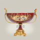 Drawing from the grandeur of French Baroque and classical European court aesthetics, this luxury compote bowl is a statement piece that commands attention. The deep wine-red ceramic body is adorned with intricate gilt gold scrollwork and a central hand-painted floral medallion featuring blooming roses and lush foliage — evoking the opulence of 18th-century aristocratic table settings. The sweeping gilt brass handles, shaped as elegant foliate forms, rise gracefully from either side, while the ornate brass pedestal base grounds the piece with authoritative classical presence.