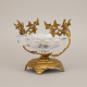 Weighing 4 kg, this bonbonniere has substantial presence on any surface. The ornate footed brass base elevates the crystal bowl, while the ivy vine handles extend elegantly on either side, adding visual drama and width. The faceted crystal bowl features a scalloped rim, enhancing its vintage classical character. Available in multiple brass finish variants to complement any interior palette.