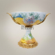 This luxury compote bowl is crafted from fine hand-painted porcelain with ornate brass filigree hardware, including a decorative brass base and brass handles.