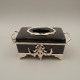 Neoclassical Black Ceramic & Brass Tissue Box with Floral Swag Mounts