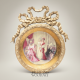 Neoclassical Bow-Crowned Circular Brass Frame with Hand-Painted Salon Scene Porcelain Plate