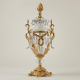 There are objects that do not merely occupy a space — they preside over it. This Neoclassical crystal covered urn, faithful in spirit to the masterworks produced under the reign of Louis XVI and the refined workshops of late-eighteenth-century France, commands presence through the elegant tension between translucent crystal and warm, gilded brass. Its silhouette — a full-bodied ovoid vessel rising from an ornate cast pedestal to a soaring flame finial — evokes the grandeur of the Ancien Régime drawing rooms where such pièces de milieu once anchored entire decorative schemes.