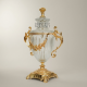 There are objects that do not merely occupy a space — they define it. This Neoclassical crystal urn vase, standing 47 cm tall atop an elaborately cast brass pedestal, commands the eye with the quiet authority of the great decorative arts tradition. Inspired by the covered urns and cassolettes that graced the mantlepieces and console tables of Louis XVI's Versailles, this piece faithfully reproduces the visual vocabulary of late 18th-century French court luxury: restrained classical form enriched by exuberant applied ornament.