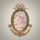 Neoclassical Oval Brass Photo Frame with Ribbon Crest & Floral Garland