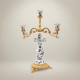 The structural framework and arms are cast from solid brass, available in Gold, Silver, or Antique Gold finish. The three candle cups are crafted from fine porcelain, hand-painted with cobalt-blue floral motifs inspired by 18th-century Meissen and Delft decorative traditions.