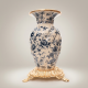 Rococo Ceramic Vase with Navy Blue Chinoiserie Florals on Ornate Brass Base