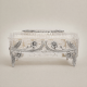 Designed to accommodate standard facial tissue boxes, this holder is scaled generously enough to anchor a vanity or side table without dominating it. The open-top slot is framed by a reeded lip, consistent with the period's love of texture layering. The four corner legs — each terminating in a small scroll — keep the piece elevated and airy rather than heavy. Available in Silver, Gold, and Antique Gold finishes to suit a full range of interior palettes, from cool contemporary to warm classical.