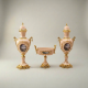 Rococo Hand-Painted Ceramic Vase & Tazza 3-Piece Set with Ormolu-Style Mounts and Landscape Medallions