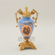 This urn vase weighs 4 kg, reflecting the substantial quality of its ceramic body and solid brass mounts. It is sold as a single statement piece, ideal for placement on a mantelpiece, console table, sideboard, or as a centerpiece in a formal reception room. The interplay between the sky-blue ceramic and the warm gilded brass creates a chromatic dialogue characteristic of the finest Rococo decorative objects. Each piece is unique — slight variations in hand-painting are a hallmark of authenticity and artisanal production.