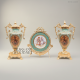 Each urn vase stands 35 cm tall and measures 22 cm wide (including handles), providing a commanding presence on any surface. The display plate measures 30 cm in height and 27 cm in width, displayed upright on its integrated gilt brass easel stand. The total set weight is approximately 4 kg. The three-piece arrangement is designed to be displayed as a cohesive garniture: plate centred, vases symmetrically flanking. The set is available in your choice of brass finish variant to coordinate with your interior.