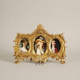 Rococo Triple Oval Brass Photo Frame with Scrollwork & Acanthus Crown