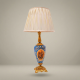 This table lamp is crafted from hand-painted ceramic, ornate brass fittings, and a pleated cream fabric shade — combining traditional craftsmanship with luxurious materials.