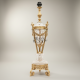 Drawing from the grandeur of French Louis XVI and Neoclassical design traditions, this exquisite urn table lamp is a masterpiece of decorative luxury lighting. Its silhouette — a graceful amphora-shaped crystal body rising from a sculpted scroll-footed plinth — channels the opulence of 18th-century European palatial interiors. Four twisted brass columns cradle the crystal urn, crowned by ornate flame-tip finials, while a delicate brass rose garland drapes elegantly across the body. The tall, intricately detailed brass stem culminates in an E27 lamp socket, completing a piece that is as much a sculptural centerpiece as it is a functional light source.