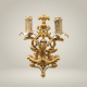 Cast entirely in solid brass, this wall sconce is handcrafted by skilled Egyptian artisans who work in the centuries-old tradition of European metalwork. The backplate is an intricate open-lattice composition of layered rocaille scrolls, rose cartouches, and wing-like foliate elements — each one individually cast and assembled with precision. The relief detailing across the candle arms, acanthus clusters, and floral rosettes reveals a level of depth and crispness that only hand-finished brass casting can achieve. The warm, burnished finish catches ambient light and gives the piece its characteristic luminous presence on any wall.