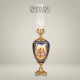 Every element of this luxury table lamp reflects exceptional artisanal skill. The ceramic body is finished in rich navy blue glaze with hand-applied gilded lattice and scrollwork patterns. The brass components — including the decorative collar, bobeche, and the elaborately cast claw-foot base — are crafted from premium brass, polished and finished by skilled Egyptian artisans at Brass & Wood. The etched glass chimney shade diffuses a warm, ambient glow, completing the antique oil-lamp aesthetic with modern electric functionality. Each lamp is a unique handcrafted object, with minor variations that testify to its artisanal origin.