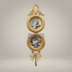 Weighing 4 kg, this frame is substantial in hand yet elegant in proportion. Its vertically oriented composition makes it ideal for mounting between windows, above a console table, or as a focal point within a gallery wall arrangement. The portrait orientation and stacked double-medallion format echo the cartel and cartouche formats favored in 18th-century French interior design. It arrives fully assembled and ready to hang, with no installation tools required beyond a wall hook appropriate for its weight.