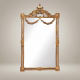 This mirror is offered in multiple finish variants to complement diverse interior palettes. The generous vertical format suits placement above a console table, fireplace mantel, or as a solo statement on a feature wall. Corner blocks are square-section with carved sunflower medallions. The crest features C-scroll volutes flanking a central cartouche, all beneath the urn-form finial — a motif synonymous with the Louis XVI period. The lower rail mirrors the upper in its reticulated lattice and centred rosette, maintaining the symmetry that is the hallmark of Neoclassical design.