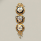 Neoclassical Triple Porcelain Medallion Brass Wall Panel - Floral Sevres-Style with Ribbon Crown