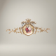 Rococo Brass Wall Cartouche with Hand-Painted Floral Medallion & Crown Crest