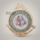 The frames, ornamental panels, and crests are crafted entirely from solid brass, hand-finished to your chosen metallic tone. The central decorative discs are porcelain plaques featuring hand-applied polychrome floral decoration on a teal ground with gilded borders.
