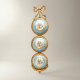 Few decorative objects embody the spirit of eighteenth-century French court taste with as much grace as this triple-medallion wall plaque. Inspired by the celebrated Sèvres manufactory tradition — the preferred porcelain atelier of Louis XV and Marie Antoinette — this piece suspends three hand-painted porcelain roundels within an architectural cascade of gilded brass frames, crowned by an exquisitely rendered ribbon bow. The effect is at once jewel-like and monumental: a composition that holds the eye and commands a wall with quiet, aristocratic authority.