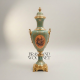 The body is crafted from high-fired ceramic with a celadon glaze and hand-painted decorations. The mounts, handles, collar rings, and pedestal base are cast brass, available in your choice of Gold, Antique Gold, or Silver finish.