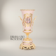 The vase body is handcrafted ceramic with hand-applied gilt decoration and hand-painted floral motifs. The handles, stem, and base are cast metal with a decorative finish. Total weight is 4 kg.