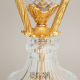Handcrafted Neoclassical incense burner in diamond-cut crystal and ornate brass, featuring urn silhouette, floral swag mounts, and pine-finial accents. H 49 cm × D 22 cm.