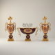 Few decorative ensembles command a mantelpiece or sideboard quite like a classical garniture set — and this three-piece Rococo composition, with its rich burgundy glaze and cascading gilded brass ormolu, delivers exactly that sense of curated grandeur. Inspired by the great Sèvres and Vienna porcelain garnitures that adorned the salons of eighteenth-century European nobility, this set faithfully interprets that tradition through the lens of Brass & Wood's Egyptian master craftsmen. The deep wine-red ceramic ground — saturated and glossy — catches the light with the quiet authority of aged claret glass, while hand-painted floral bouquet medallions render each piece an individual work of decorative art.