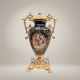 In the great tradition of the royal porcelain manufactories of eighteenth-century Europe — Sèvres, Meissen, and Vienna — this magnificent lidded urn vase commands attention with the authority of a true palace centrepiece. The deep cobalt ground, saturated to the richness of lapis lazuli, provides a dramatic canvas against which scrolling gold acanthus arabesques sweep freely across the body. A hand-painted floral medallion — its bouquet of roses, peonies, and mixed blooms rendered with the delicate naturalism of Rococo botanical illustration — anchors the composition on the principal face. This is a Baroque-Rococo interpretation faithfully honouring the spirit of the great covered urns that once graced the mantlepieces and console tables of European royal courts.
