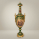 Few decorative objects command a room with the authority of the grand covered urn vase, and this piece — faithfully inspired by the celebrated Sèvres porcelain tradition of 18th-century France — does so with effortless distinction. Rising in a graceful elongated silhouette from a stepped, gilded base to a slender finial-topped lid, its deep emerald green ground immediately signals the aristocratic palette favored by the ateliers of Louis XVI. This is not merely a vase; it is a sculptural proclamation of refined taste, equally at home on a marble console in a formal reception hall or as the centrepiece of a curated collector's display.