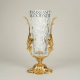Handcrafted Rococo urn vase combining faceted crystal with ornate cast-brass acanthus scroll handles and a foliate base. A commanding centrepiece for reception or salon.