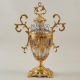 Rococo Lidded Crystal Urn Vase with Scrollwork Brass Mounts & Swag Garland