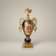 Weighing 4 kg, this piece carries the satisfying heft of quality materials — a tactile assurance of its substance. The gilded brass base is cast in a stepped square profile, the upper tier featuring a beaded rope molding and the lower register adorned with an acanthus frieze. Each element — from the precisely fitted lid to the flared foot ring — reflects the attention to proportion that distinguishes a great urn from a merely decorative one. Please note that specific height and width dimensions are available upon request from our team.