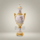 This substantial urn vase weighs 4 kg, reflecting the density of its fine porcelain construction and solid brass ormolu mounts. The tall, slender proportions make it ideal as a singular statement piece — placed solo on a console, flanked symmetrically as a pair, or positioned as the centrepiece of a curated classical vignette. The covered lid with its gilded finial is removable, offering flexibility for display or floral arrangement. Available in your choice of brass finish — Gold, Silver, or Antique Gold — to complement a range of interior palettes from cream and ivory to deep lacquer and marble.