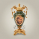 The body is high-quality green-glazed ceramic with hand-painted decorative cartouches. All mounts, handles, lid, and pedestal base are individually cast brass, hand-finished to your chosen color variant (Gold, Silver, or Antique Gold).