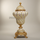 The body and lid are crafted from fine ceramic with hand-painted polychrome enamel decoration. All mounts — including the base, collar ring, waist knop, and finial — are cast brass, hand-finished and gilded. Total weight is 4 kg.