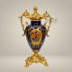 Rococo Lidded Urn Vase - Navy Blue Ceramic with Ornate Brass Mounts & Floral Medallion