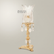 Handcrafted neoclassical brass candle holder, 35H × 13W × 13D cm, featuring a tulip crystal shade, faceted crystal ball stem, and cascading crystal pendant drops.