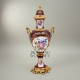 Sèvres-Style Porcelain & Brass Garniture Set - Burgundy Floral Hand-Painted Urns with Lidded Centrepiece