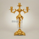 Every element of this candelabra has been painstakingly handcrafted by artisans at Brass & Wood's Egyptian workshops. The primary structure is cast and finished in premium brass, shaped into flowing acanthus-leaf scrollwork on the heavily ornate square base — a hallmark of Rococo decorative language. Rising from the base, a faceted crystal column catches and refracts ambient light, creating the prismatic brilliance associated with the finest European crystal ware. Brass appliqués in naturalistic leaf and scroll forms clasp the crystal shaft, uniting the two materials with technical precision. The three candle arms sweep outward with characteristic Rococo curvature, each terminating in a bobeche cup cradled by a cast acanthus leaf collar. The central arm rises to a matching bobeche at the apex, ensuring visual balance across all three tiers.